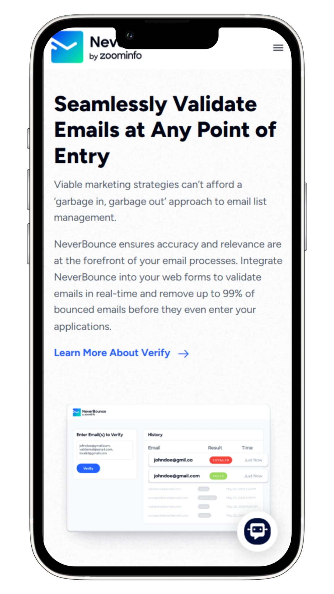 NeverBounce is a leading email verification and list cleaning platform that helps businesses ensure the accuracy and deliverability of their email communications. Founded in 2014, the company provides real-time email verification and bulk list cleaning solutions that allow marketers, sales teams, and organizations to remove invalid or risky email addresses, improve sender reputation, and increase the performance of their email campaigns.